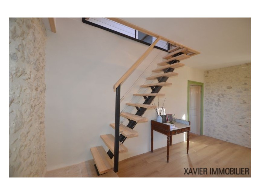 Quant aux menuiseries, celles-ci sont en bois en simple et double vitrages avec des volets en bois. La propriété est raccordée à une fosse septique toute neuve et le chauffage est assuré au moyen d’une chaudière au fioul au rez-de-chaussée.