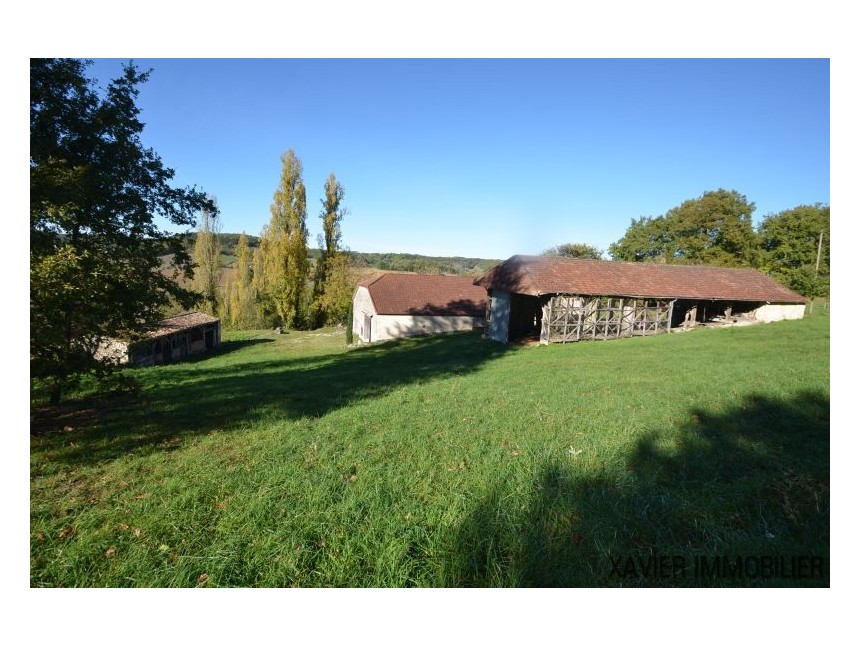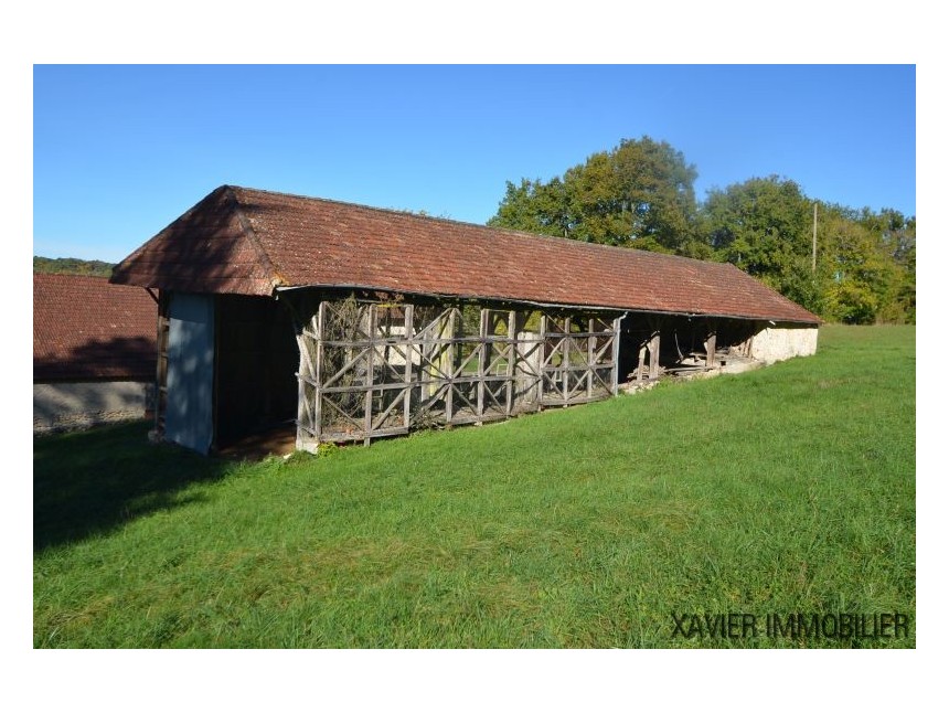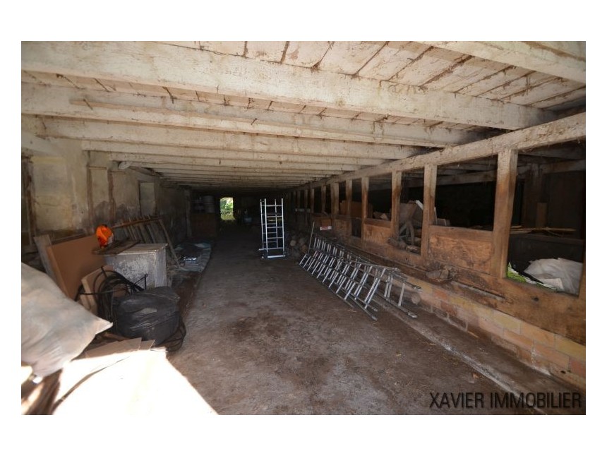 De plus, sur le terrain se trouvent une grange d’env. 286m², des étables (à restaurer) d’en. 50m², un hangar d’env. 170m², un garage d’env. 38m² avec une pièce au-dessus et un petit pigeonnier de 8m², source.