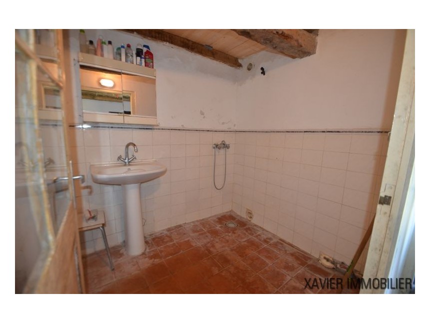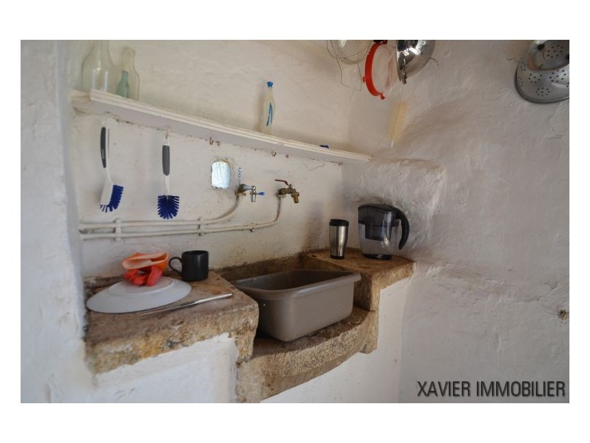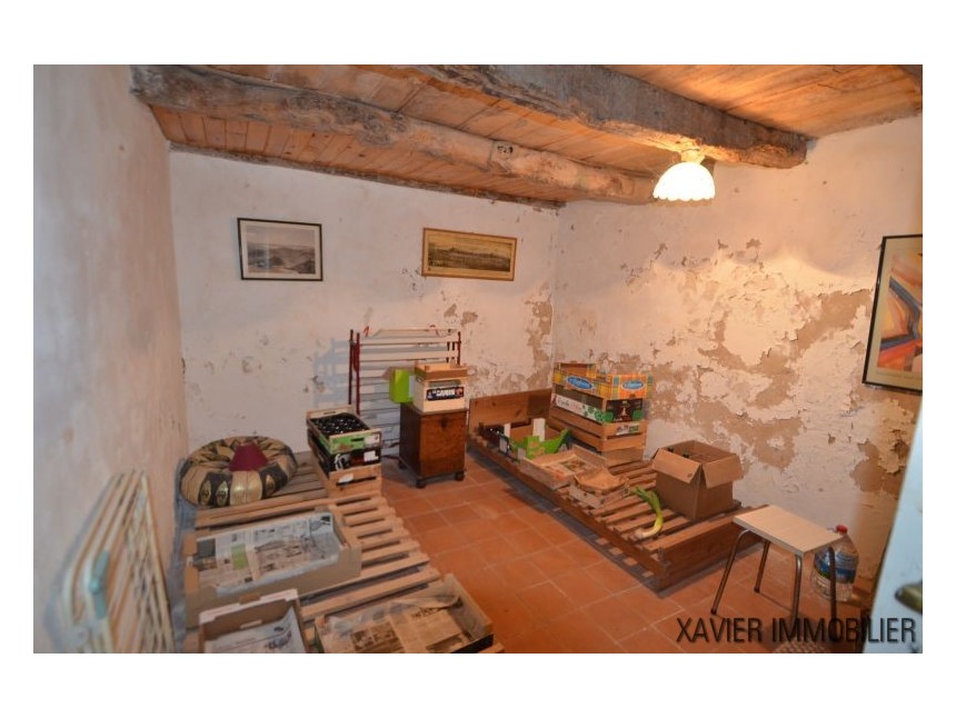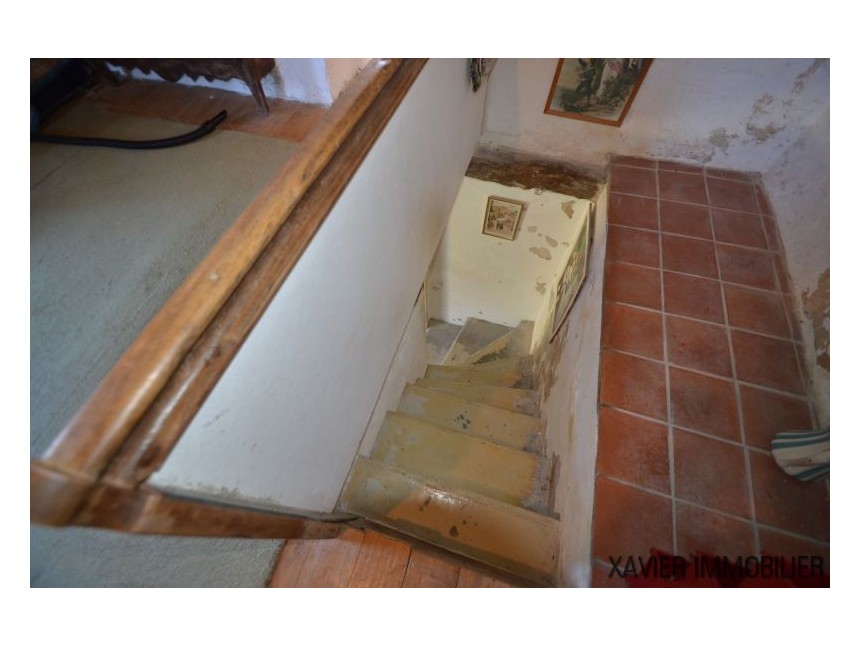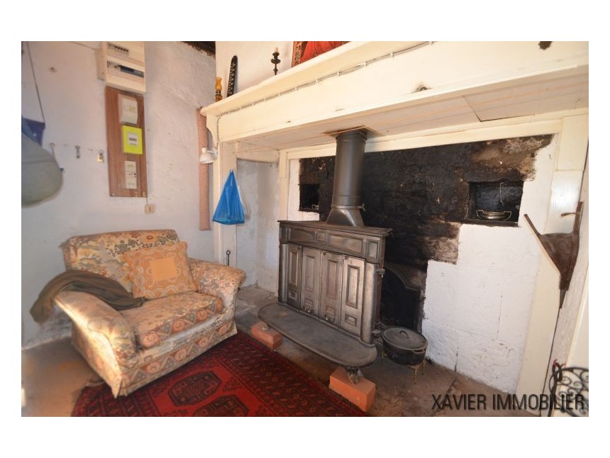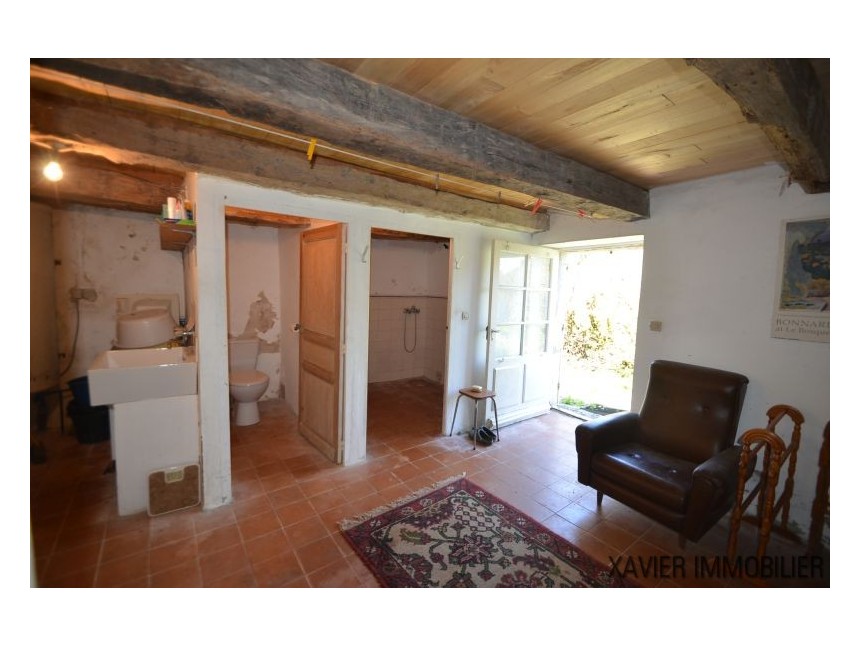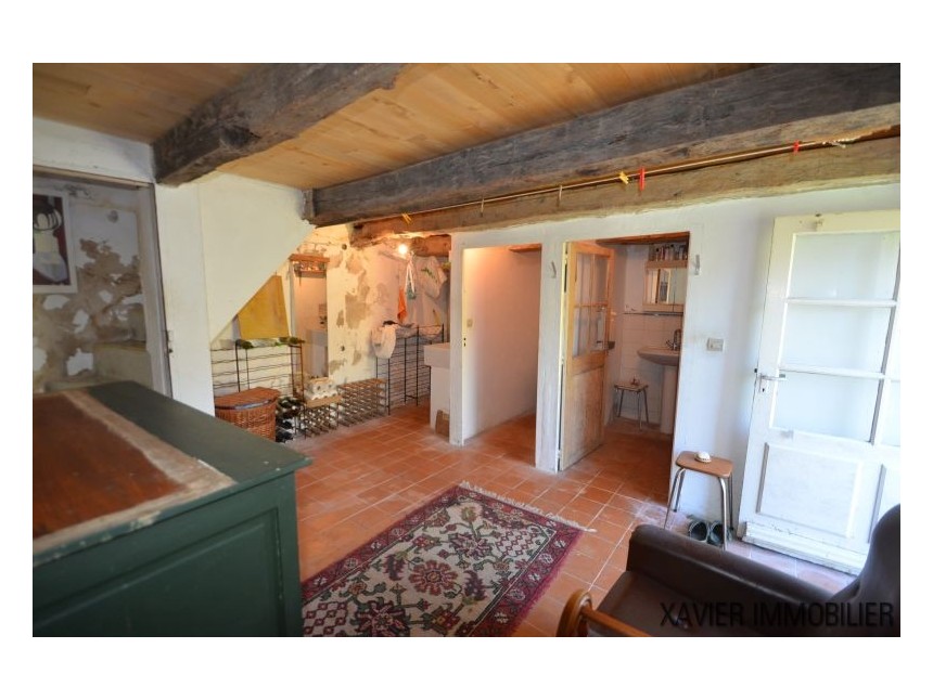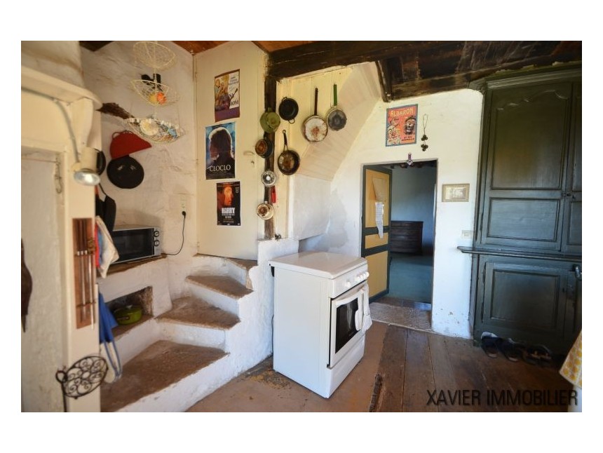 Idéale comme résidence secondaire ou pour un couple, la maison propose une cuisine d’environ 20 m² avec cheminée, ainsi qu’une spacieuse chambre d’environ 23 m². Un escalier mène au rez-de-jardin, où se trouvent une buanderie, des toilettes, une salle d’eau et une seconde chambre d’environ 12 m².