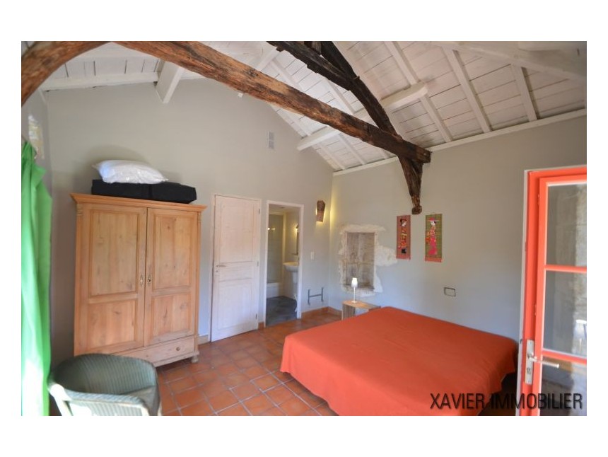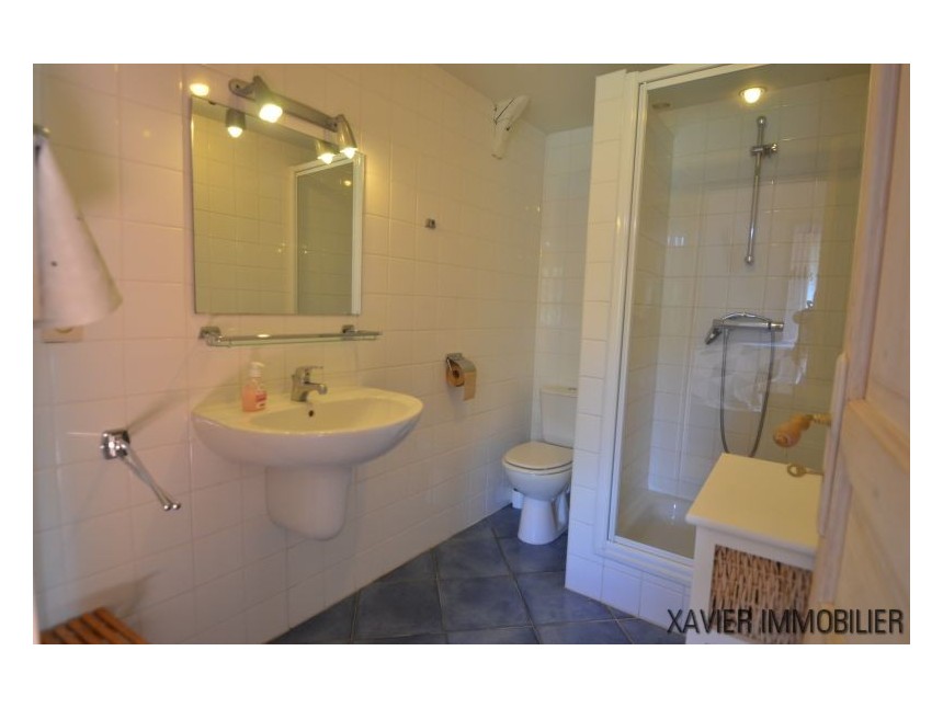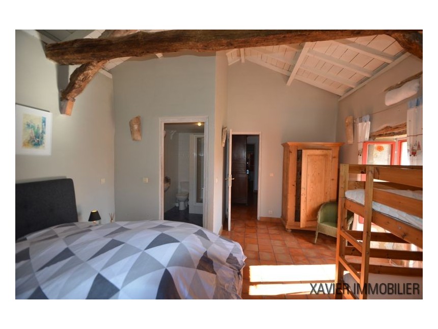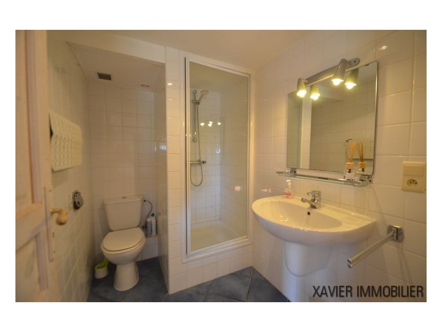 From the kitchen a staircase leads to the first floor where a landing of approx. 5.5sqm is giving access to a double bedroom with en-suite shower room with toilet of approx. 18.5sqm, the second double bedroom has the same size and has also his private shower room but is benefitting of an access to the garden from the original “bolet”.